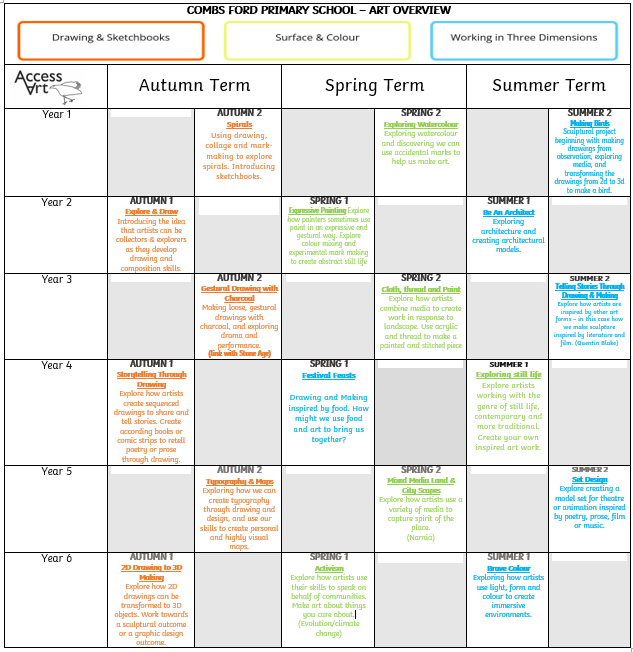 We use tracking grids that are created from the ‘success criteria’ on our medium-term plans and we assess the children’s work to be: beginning to show a skill; can show a skill; can confidently show a skill. It is not necessary to assess children’s work during every lesson, “…progression in art is rarely linear. Progress and understanding can and will occur in leaps and bounds, sprinkled by periods of plateau.” Paula Briggs AccessArt.