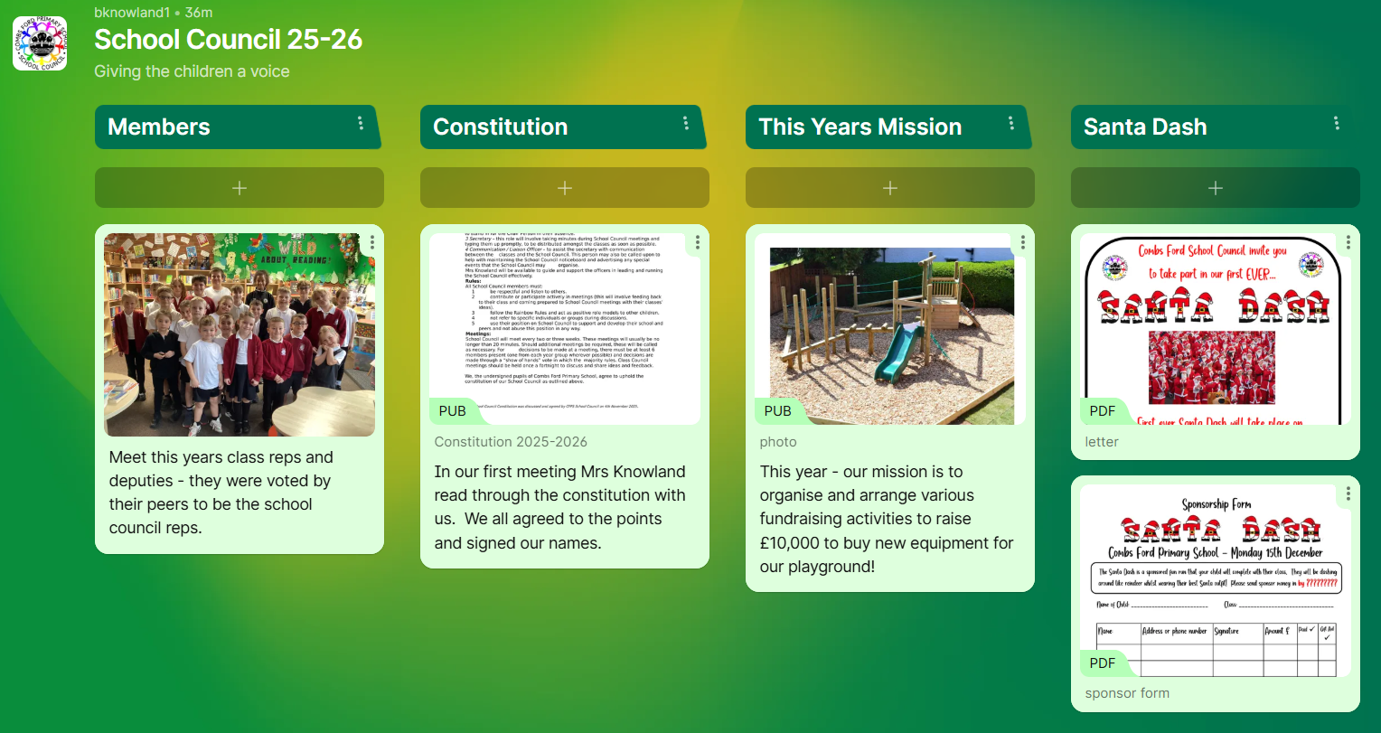 At the start of the school year, each class elects a school council representative to attend regular meetings, giving the children a voice in making decisions for the school.